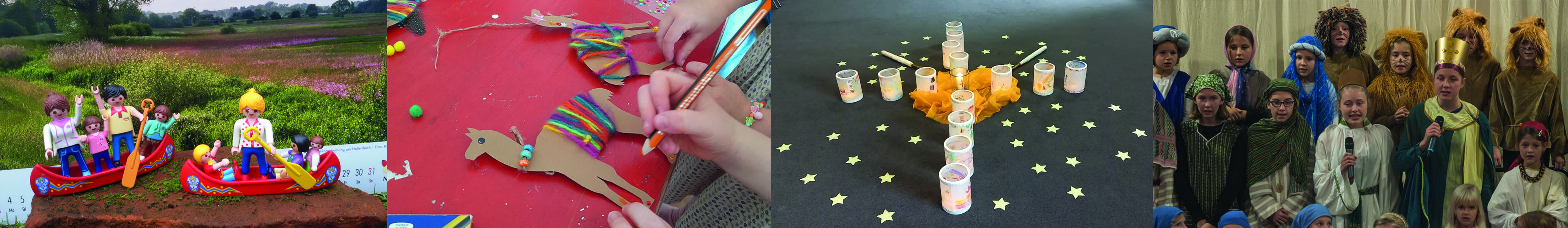 Einmal im Monat am Sonntag Nachmittag trifft sich ein Team von Erwachsenen in der Klosterkirche mit Kindern ab etwa 4 (wenn nötig auch in Begleitung) bis etwa 12 Jahren zum Gottesdienst, zum Singen, Spielen und Werkeln.